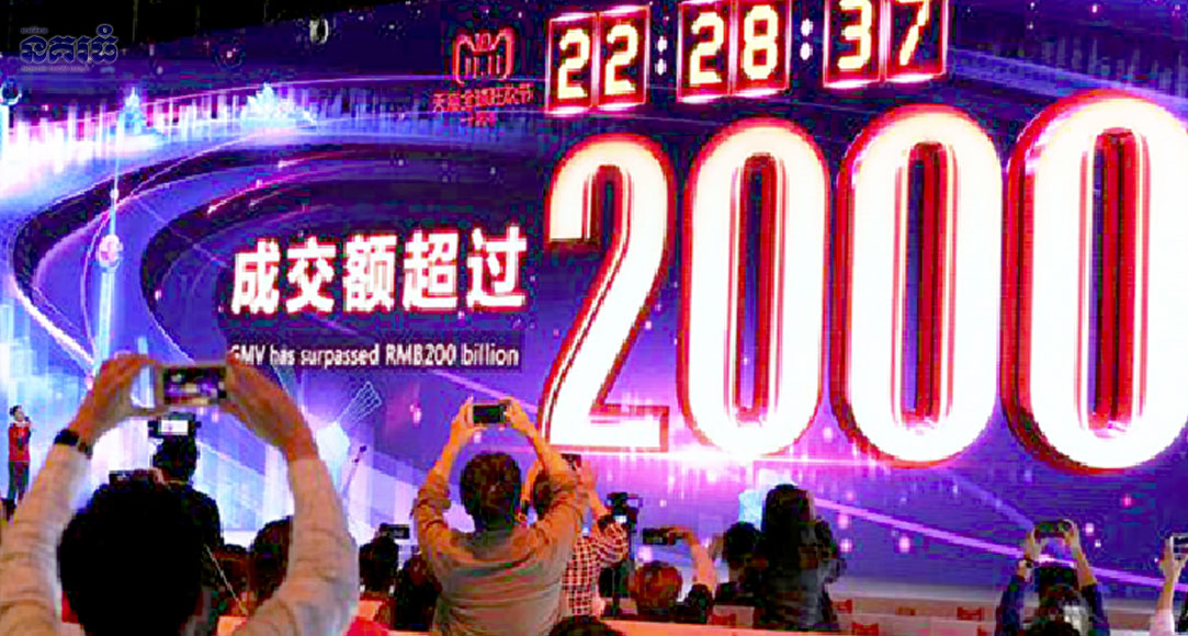 ក្រុមហ៊ុនលក់ទំនិញតាមប្រព័ន្ធអនឡាញដ៏ល្បីល្បាញរបស់ចិន មួយនេះ រកចំណូលបាន១ពាន់លានដុល្លារ នៅក្នុងរយៈពេល៨៥វិនាទី និងកើនឡើងដល់១០ពាន់លាន ក្នុងរយៈពេល៤ម៉ោងដំបូង នៃរយៈពេលលក់២៤ម៉ោង សរុបមក ក្រុមហ៊ុននេះអាចរកចំណូលបាន៣០,៨ពាន់លានដុល្លារ គឺកើនឡើង២៧% បើប្រៀបធៀបទៅនឹងឆ្នាំទៅមិញ។