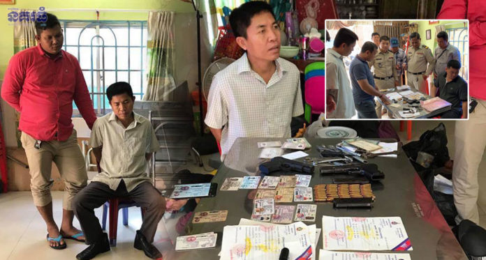 ប្រភពដែលបានឲ្យដឹងទៀតថា ការចុះបង្ក្រាបនេះ សមត្ថកិច្ចបានដកហូតវត្ថុតាង រួមមាន ម៉ូតូ១គ្រឿង ម៉ាកSuzuki Nex ពណ៌ខ្មៅ សេរីឆ្នាំ២០១៧ ពាក់ស្លាកលេខកំពង់ចាម 1S-1193, រថយន្ត១គ្រឿង ម៉ាក CRV ពណ៌ទឹកមាស ស៊េរីឆ្នាំ២០០២ ពាក់ស្លាកលេខភ្នំពេញ 2R-6265, អាវុធខ្លីចំនួន០២ដើម ១. ម៉ាក K54 លេខ 4365 (២បង់ គ្រាប់ ៥០គ្រាប់) ២.ម៉ាក QSZ92 លេខ 006878 (១បង់គ្រាប់ ១៥គ្រាប់), ប័ណ្ណសំគាល់ទោចក្រយាយន្ត ចំនួន១៣សន្លឹក, ប័ណ្ណបើកបរ០១សន្លឹក, អត្តសញ្ញាណប័ណ្ណសញ្ជាតិខ្មែរ ០៣សន្លឹក, អត្តសញ្ញាណប័ណ្ណយោធា ០៦សន្លឹក, ប័ណ្ណសំគាល់អាវុធខ្លី ១៥សន្លឹក, លិខិតបញ្ជាបេសកកម្ម ០៩សន្លឹក, ស្លាកលេខរថយន្ត ០២សន្លឹក លេខកណ្តាល 2A-5324 ។