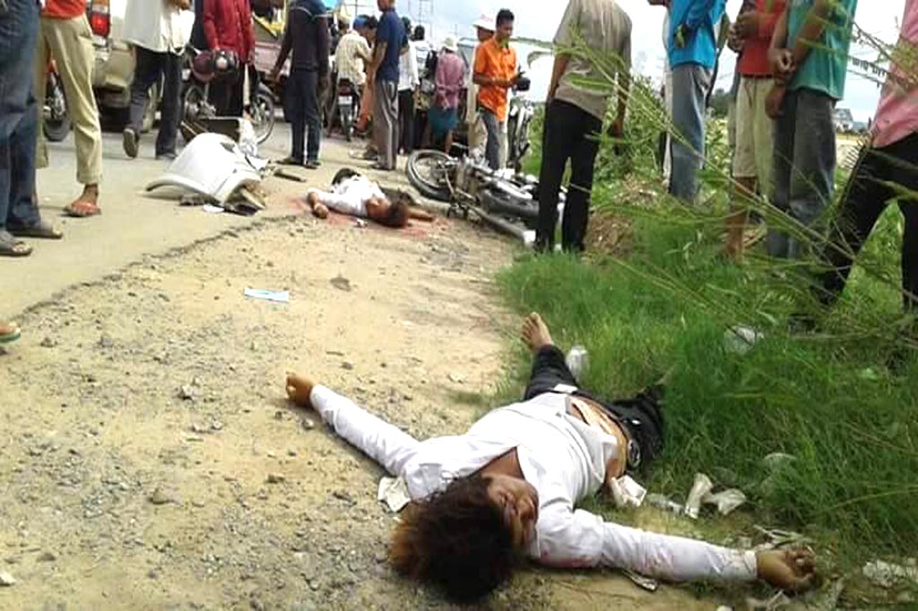 ភ្នំពេញ៖ យុវជន២នាក់ បងប្អូនជីដូនមួយស្លាប់ភ្លាមៗនៅកន្លែងកើតហេតុ ខណៈពេលជនជាតិបរទេសបើករថយន្តដឹក ប្រពន្ធនិងកូន២នាក់ ទើបនឹងមកពីលេងខេត្តកំពត បានបើករថយន្តវ៉ារថយន្តមួយគ្រឿងទៀត ជ្រុលទៅបុកម៉ូតូរងគ្រោះបើកនៅតាមចិញ្ចើមផ្លូវចំពីមុខពេញទំហឹងតែម្ដង ។ ហេតុការណ៍គ្រោះថ្នាក់ចរាចរណ៍ខាងលើនេះ បានកើតឡើងកាលពីវេលាម៉ោង២ និង៤០នាទីរសៀលថ្ងៃទី២៨ ខែសីហា ស្ថិតនៅលើកំណាត់ផ្លូវជាតិលេខ៣ ត្រង់ចំណុចភូមិទួលកី សង្កាត់ភ្លើងឆេះរទេះ ខណ្ឌពោធិ៍សែនជ័យ ។