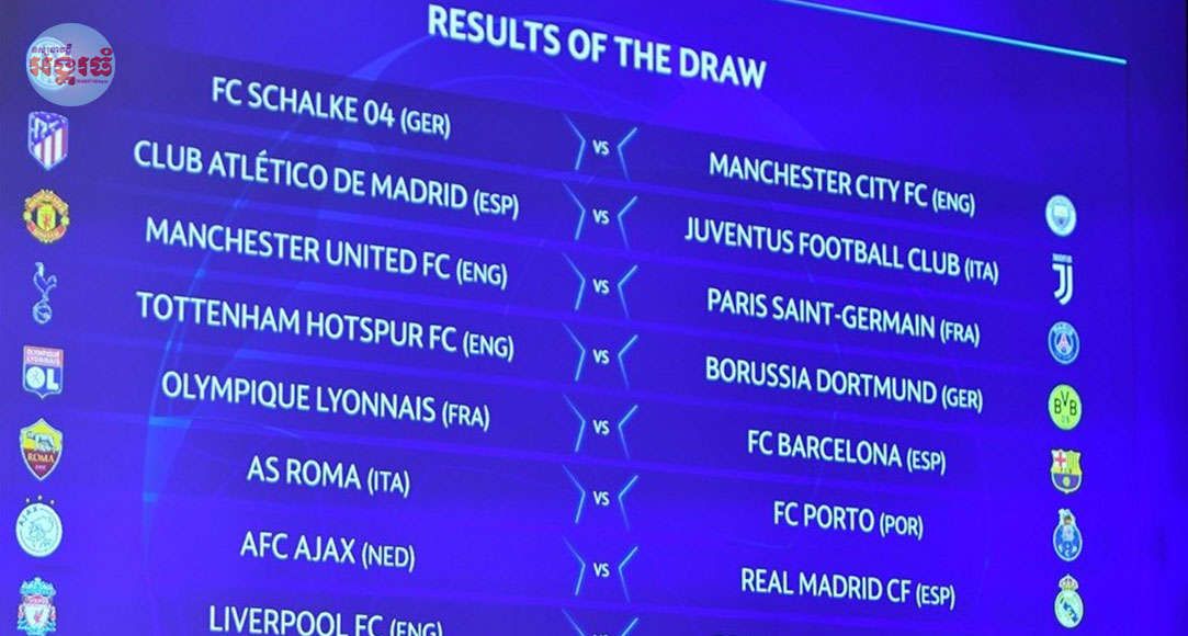 ការចាប់ឆ្នោតសម្រាប់ការប្រកួតបាល់ទាត់ Uefa Champion League ២០១៨ វគ្គ១៦ក្រុម បានធ្វើរួចហើយ កាលពីរាត្រីថ្ងៃអង្គារ ទី១៨ ខែធ្នូ នៅទីក្រុង Nyon ប្រទេសស្វីស។