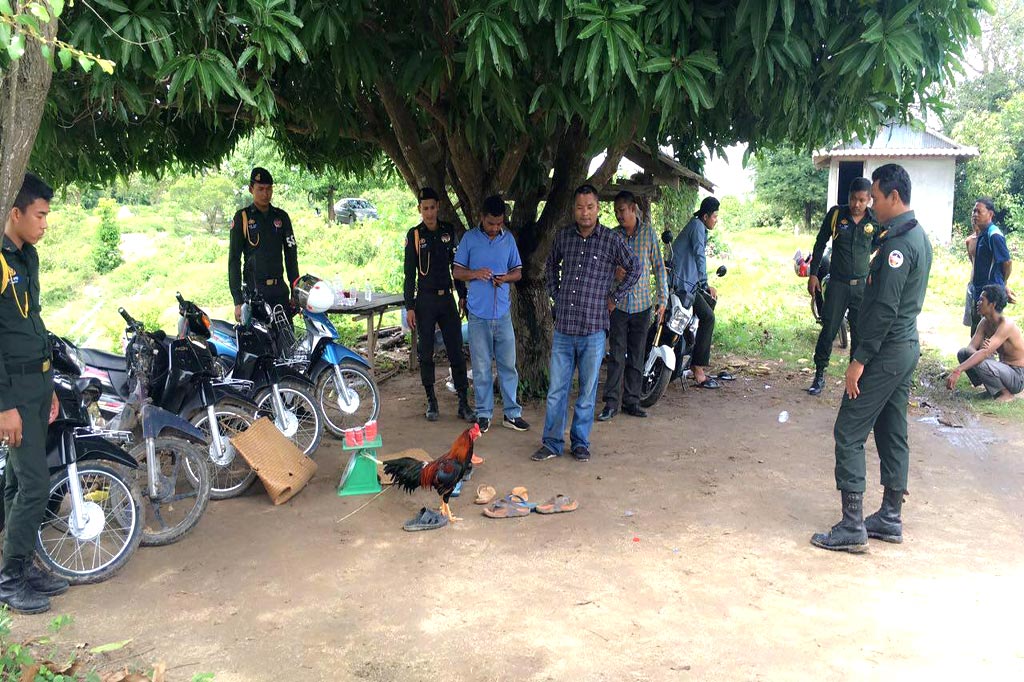 ខេត្ដព្រៃវែង៖ កាលពីថ្ងៃទី២៨ ខែសីហា ឆ្នាំ២០១៦ កម្លាំងកងរាជអាវុធហត្ថខេត្ត សហការជាមួយអាវុធហត្ថស្រុក បានធ្វើការបង្ក្រាបទីតាំងបើកល្បែង ជល់យ៉ាងសកម្មមួយ ស្ថិតនៅភូមិព្រៃកំពែង ឃុំព្រៃកណ្តៀង ស្រុកពាមរក៌ ចាប់បានតែកីឡាករបក្សី ចំណែកម្ចាស់ដែលជាក្រុមញៀនល្បែង បានរត់គេចខ្លួនចោលម៉ូតូអស់ ។