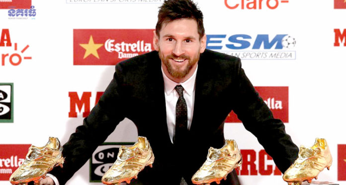 កីឡាករខ្សែប្រយុទ្ធ Messi របស់ក្លឹបអ្នកមានបុណ្យ Barcelona គ្រងតំណែងស្បែកជើងមាស ២០១៨ កាលពីរាត្រីថ្ងៃពុធ ទី១៨ ខែធ្នូ ឆ្នាំ២០១៨ កន្លងទៅនេះ។