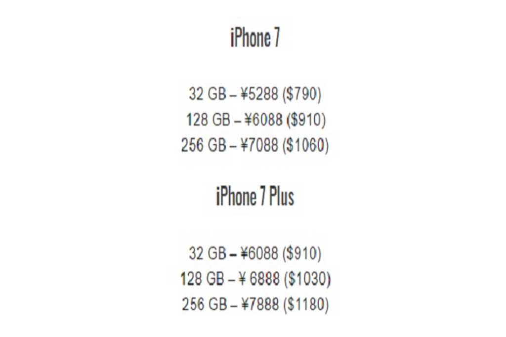 ជាក់ស្តែង ស៊េរី iPhone 7 ៣២ជីកាបៃ នឹងបានលក់ចេញក្នុងតម្លៃ ៧៩០ដុល្លារ ស៊េរី ១២៨ជីកាបៃ មានតម្លៃ ៩១០ដុល្លារ និងស៊េរី ២៥៦ជីកាបៃ គឺ១០៦០ដុល្លារ ។
